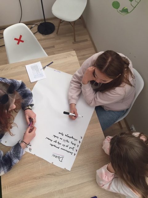 Otwarci młodzi ludzie, wspaniale współpracujący podczas warsztatów krytycznego myślenia. Przeanalizowaliśmy temat „po co regulamin w domach dziecka” z perspektywy różnych grup i zobaczyliśmy jak ważne i trudne jest odróżnianie faktów od opinii. I odpowiedzieliśmy sobie na pytanie, co to właściwie jest to „krytyczne myślenie”.